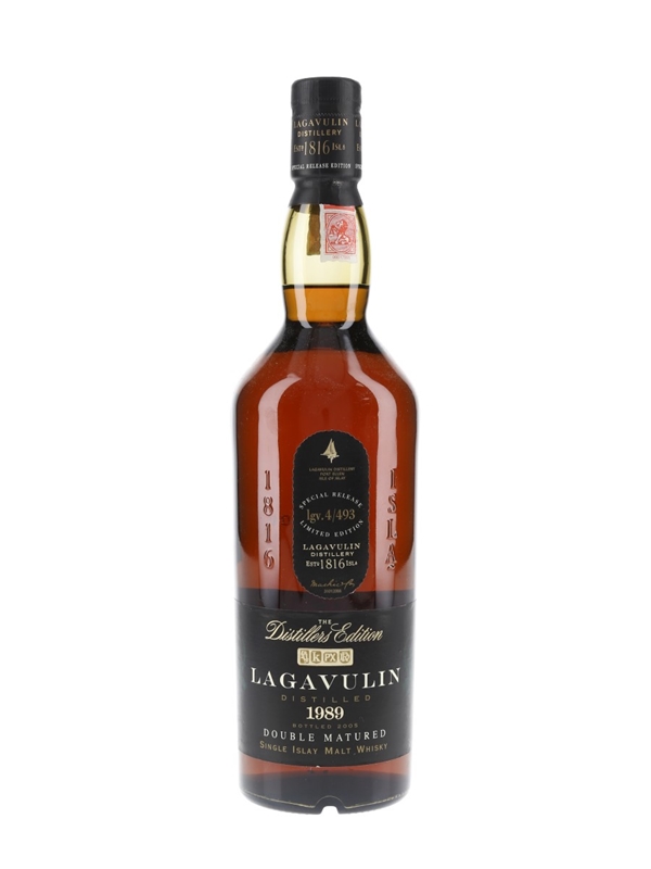 A bottle of Lagavulin 1989 Islay Single Malt Scotch Whisky. This was distilled in 1989, finished in ex-Pedro Ximenez sherry casks and bottled in 2005 for the Distillers Edition series.