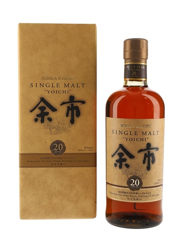 A bottle of Yoichi 20 Year Old single malt from Japan, produced by The Nikka Whisky Distilling Co. Ltd.