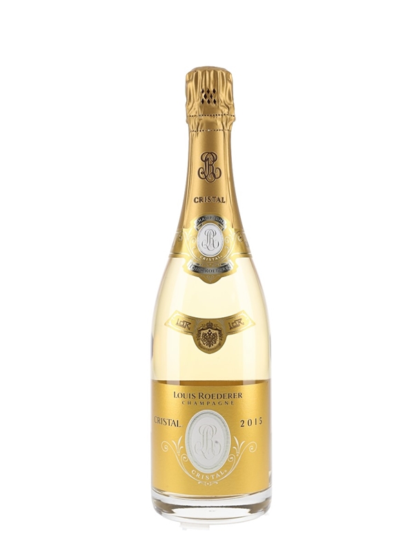 A bottle of Louis Roederer Cristal from the 2015 vintage. A blend of 60% Pinot Noir and 40% Chardonnay.