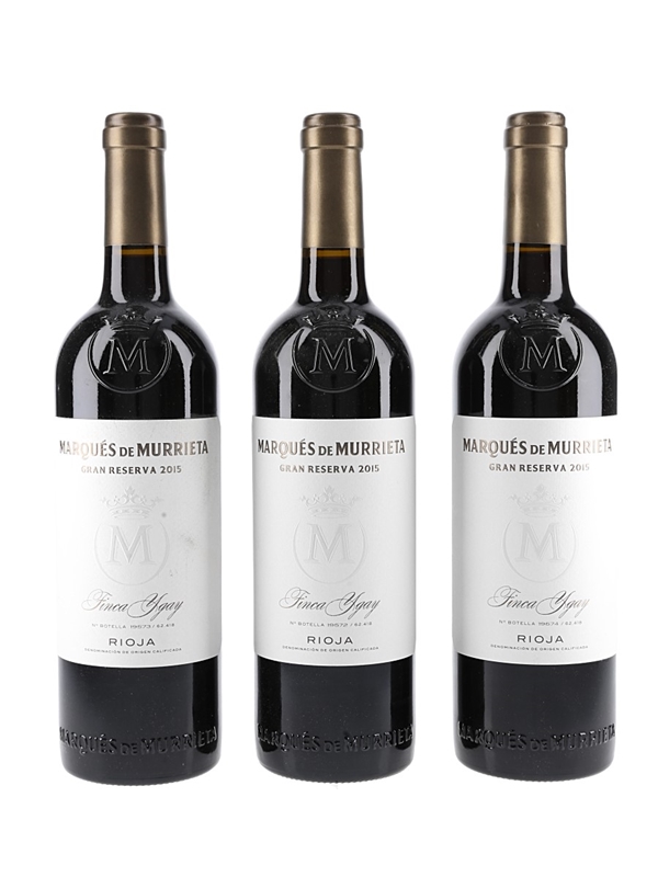 This lot contains three bottles of 2015 Gran Reserva Rioja from Marques De Murrieta in Logroño, Spain.
