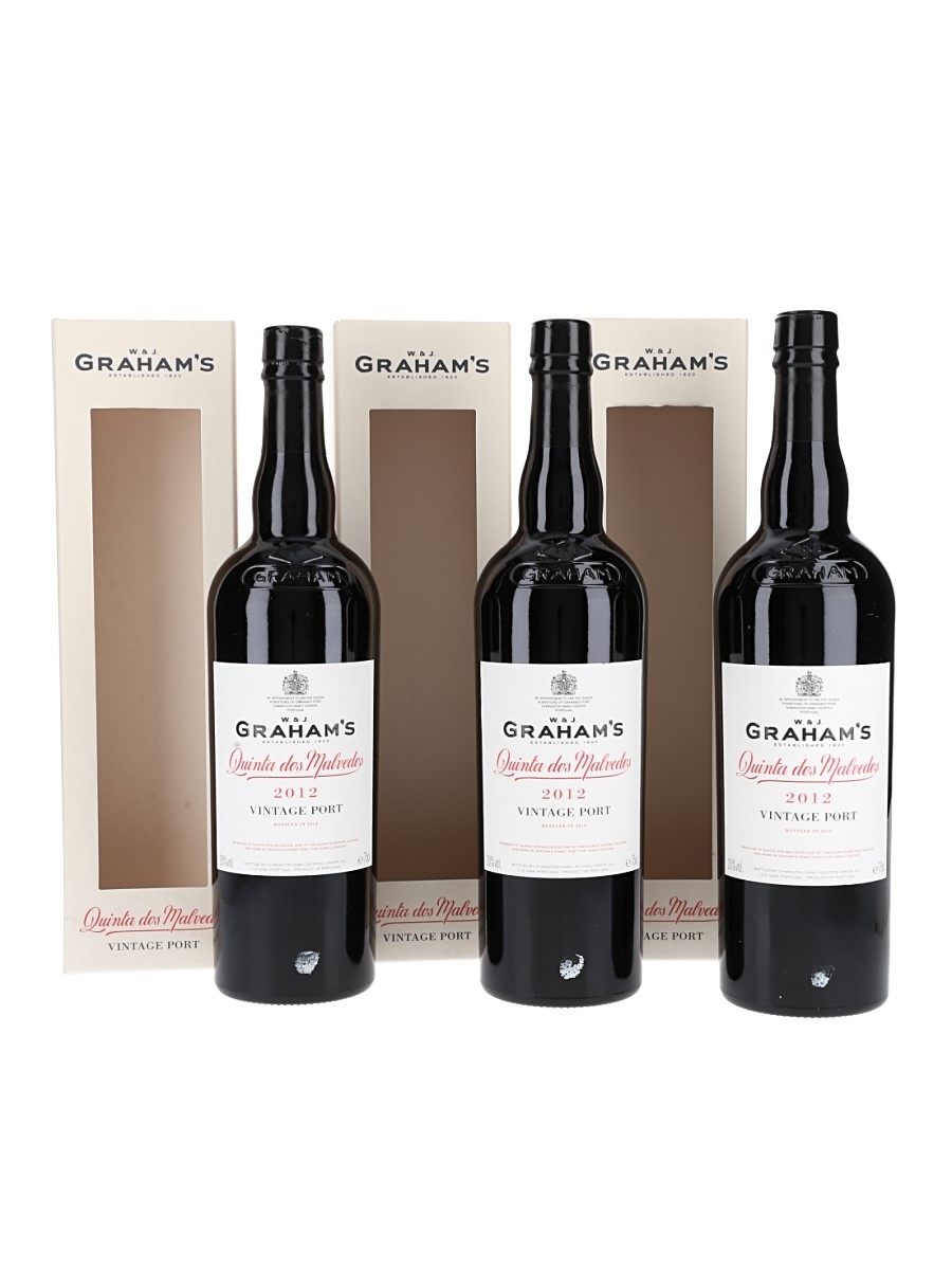 This lot contains three bottle of Graham's Quinta Dos Malvedos 2012 Vintage Port, bottled in 2014 by Symington Family Estates.