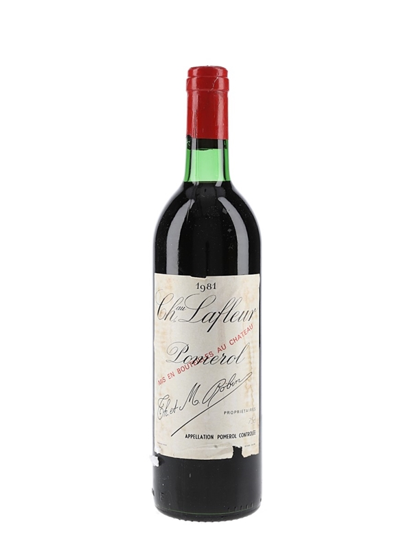 A bottle of 1981 Château Lafleur from Bordeaux's Pomerol appellation, a 4.5 hectare estate making around 18,000 bottle per vintage from an even split of Merlot and Cabernet Franc vines.
