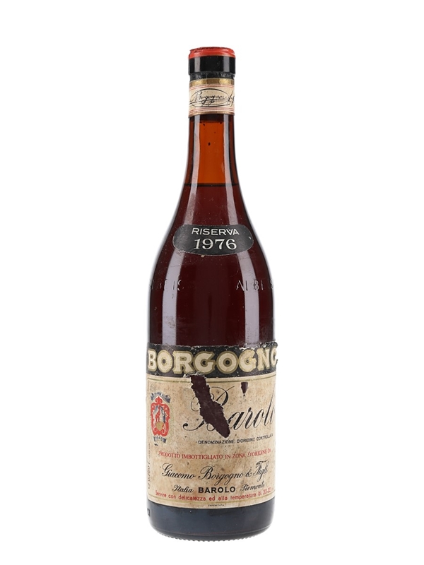 A bottle of 1976 Borgogno Barolo Riserva, produced and bottled by Giacomo Borgogno & Figli.