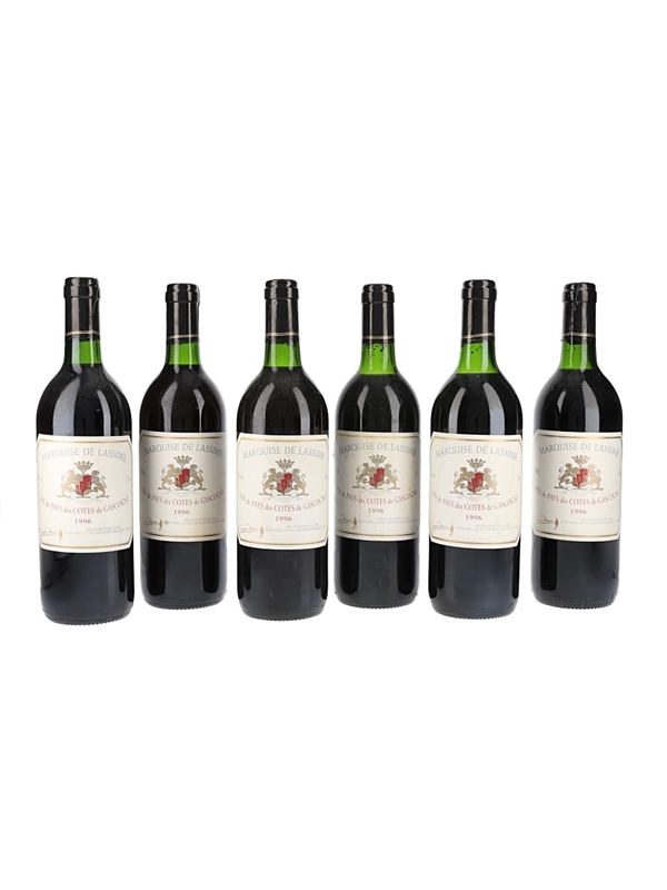 This lot contains 6 bottles of 1996 Marquise De Lassime Vin De Pays from the Cotes De Gascogne region.