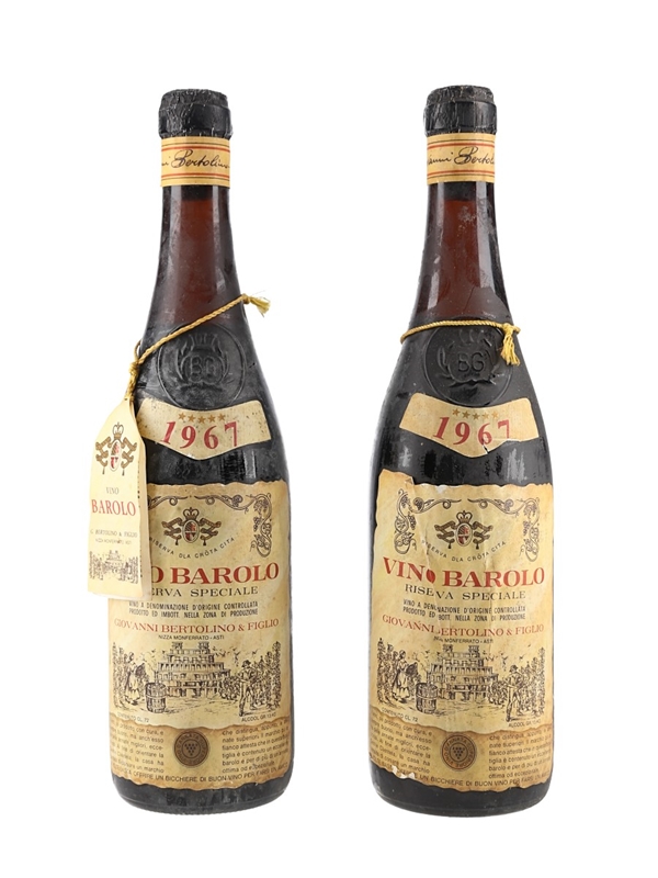 This lot contains 2 bottle of 1967 Vino Barolo Riserva Speciale produced by Giovanni Bertolino & Figlio in Piedmont, Italy.