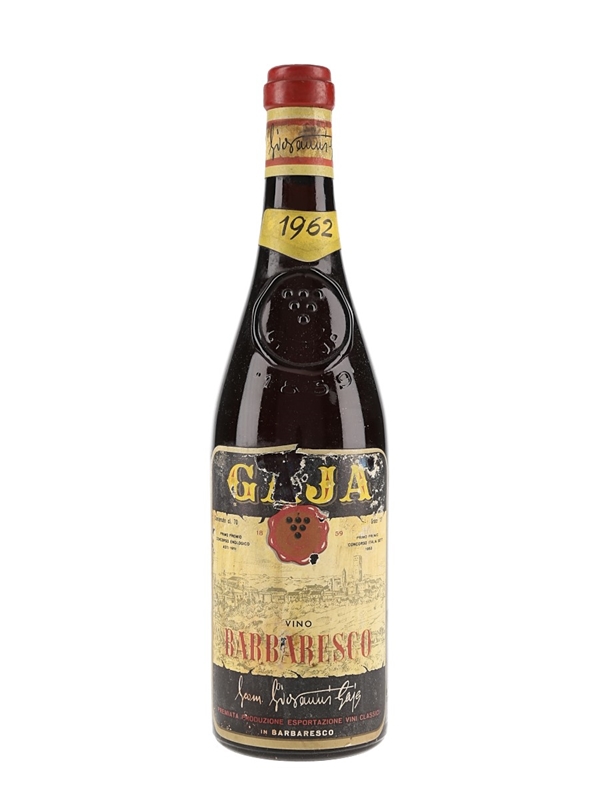 A bottle of 1962 Gaja Barbaresco wine produced in Italy.