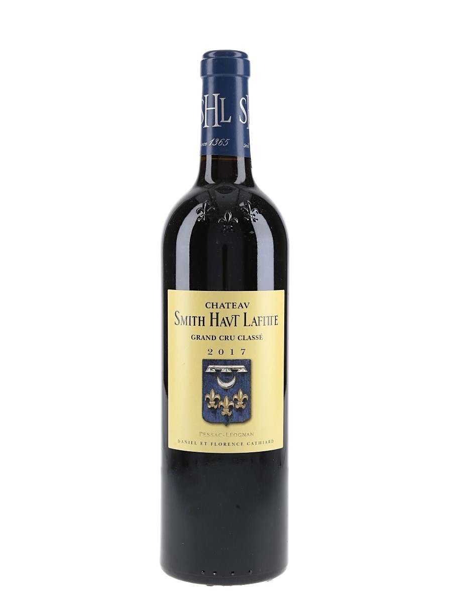 A bottle of 2017 Château Smith Haut Lafitte from the Pessac-Léognan appellation in Bordeaux.