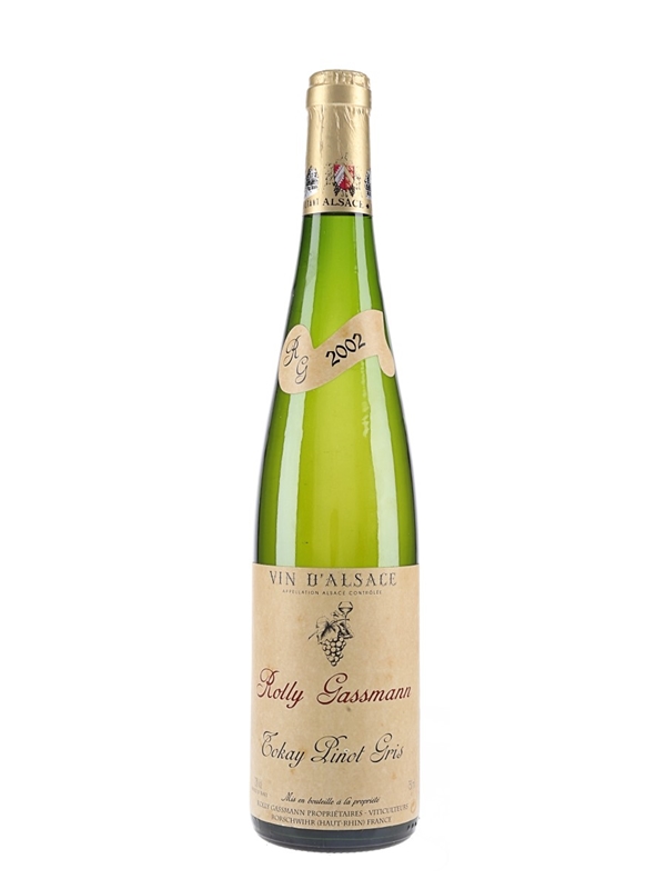 A bottle of 2002 Tokay Pinot Gris from Alsace producer Rolly Gassmann, who is located in the town of Rorschwihr near Ribeauvillé, farming 50 hectares of vineyards.