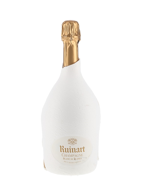 A bottles of Ruinart Blanc de Blancs Brut Non-Vintage Champagne produced using 100% Chardonnay.