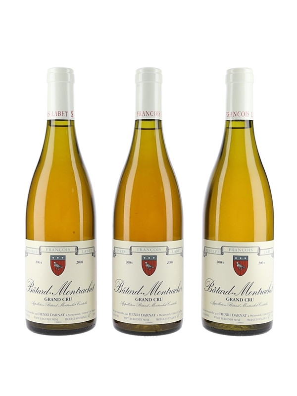 This lot contains three bottles of 2004 Bâtard-Montrachet Grand Cru Reserve Francois Labet, bottled by Henri Darnat in France.