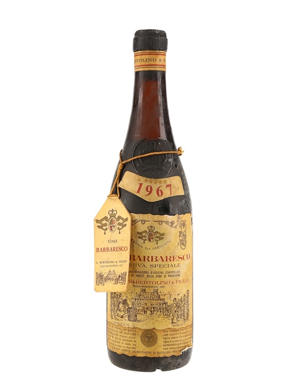 A bottle of 1967 Vino Barbaresco Riserva Speciale produced by Giovanni Bertolino & Figlio in Piedmont, Italy
