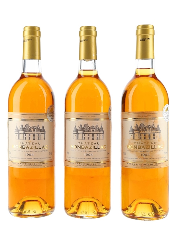 This lot contains three bottles of 1994 Chateau Monbazillac.