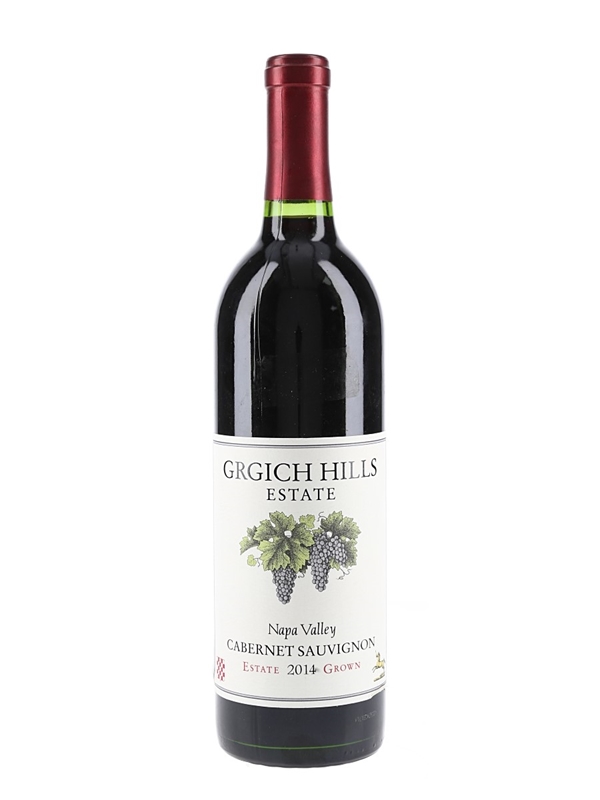 A bottle of 2014 Grgich Hills Estate Cabernet Sauvignon from Napa Valley, California.