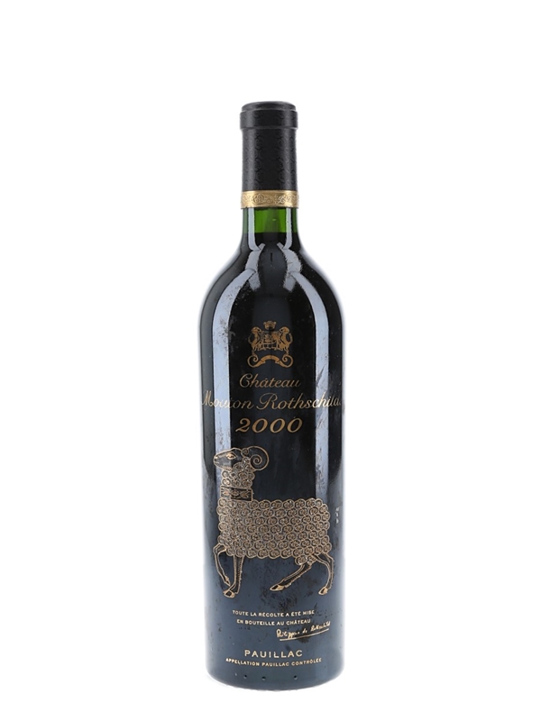 A bottle of 2000 Château Mouton Rothschild from Bordeaux's Pauillac appellation.