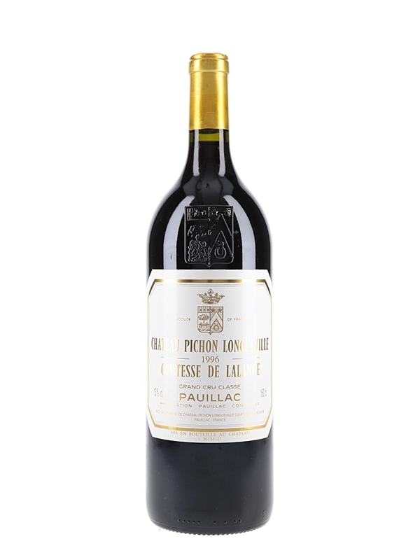 A Magnum bottle of 1996 Château Pichon Longueville Comtesse de Lalande, a 'Super Second' growth from Bordeaux's Pauillac appellation.