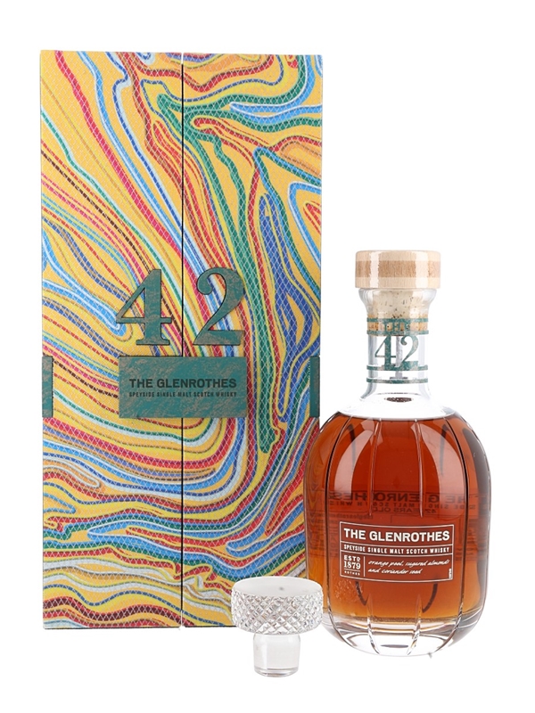 A bottle of The Glenrothes 42 Year Old Speyside Single Malt Scotch Whisky. This comes with a glass stopper.