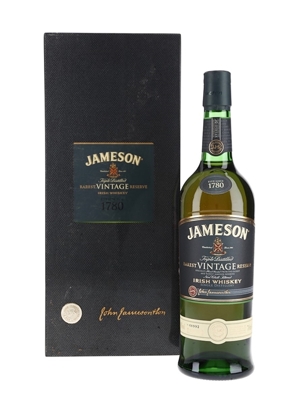 A bottle of Jameson Triple Distilled Rarest Vintage Reserve Irish Whiskey. The bottling code indicates that this was bottled on 21 July 2015.