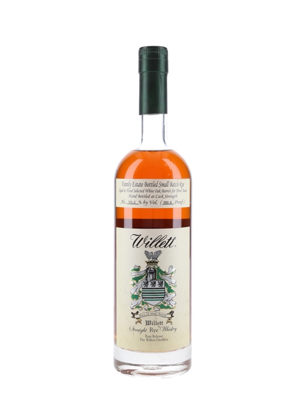 A bottle of Willett Family Estate 3 Year Old Small Batch Straight Rye Whiskey. This was matured for three years in hand selected white oak barrels and bottled at a cask strength of 55.2% ABV.