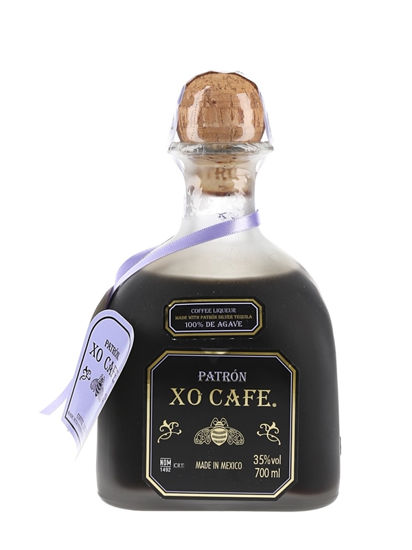 A bottle of Patrón XO Café, a coffee liqueur made with Patrón Silver Tequila from Mexico.