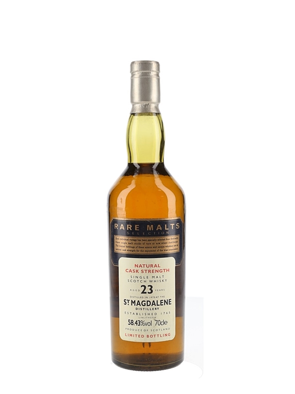 A bottle of St Magdalene 23 Year Old Single Malt Scotch Whisky. This was distilled in 1970 and bottled for Diageo's now-discontinued Rare Malts Selection.