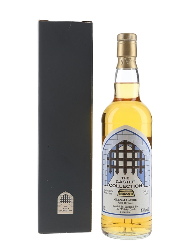 A bottle of Glenallachie 18 Year Old. This was distilled in October 1976 and bottled in June 1995 for The Whisky Castle Tomintoul, part of the Castle Collection series.
