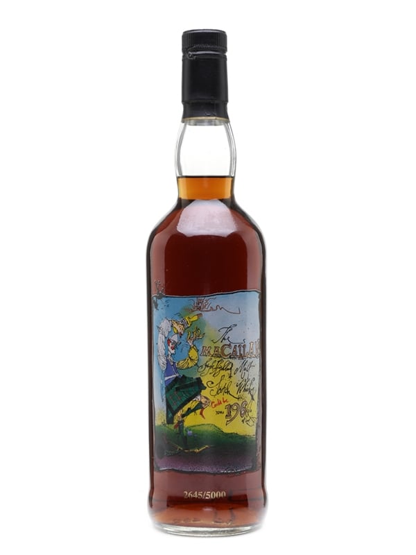 A bottle of The Macallan, released in 1996 to celebrate the 35th anniversary of satirical magazine Private Eye. This is a vatting of casks selected by whisky maker FA Newlands and includes a cask from 1961, the year Private Eye was founded.