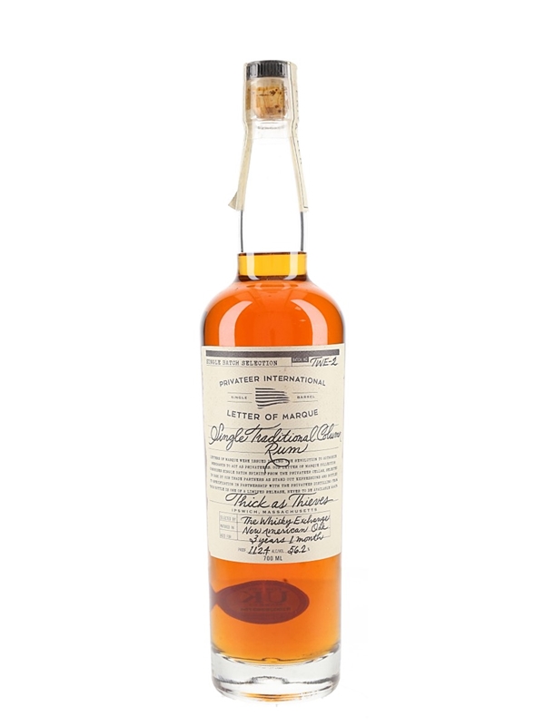 A bottle of Thick as Thieves 3 Year and 1 Month Old Single Traditional Column Rum produced by Privateer International. This was matured in a new American oak and bottled at 56.2% exclusively for The Whisky Exchange.