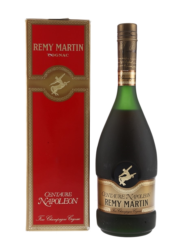 A bottle of Rémy Martin Centaure Napoleon Fine Champagne Cognac. We estimate this was bottled in the 1970s to 1980s.