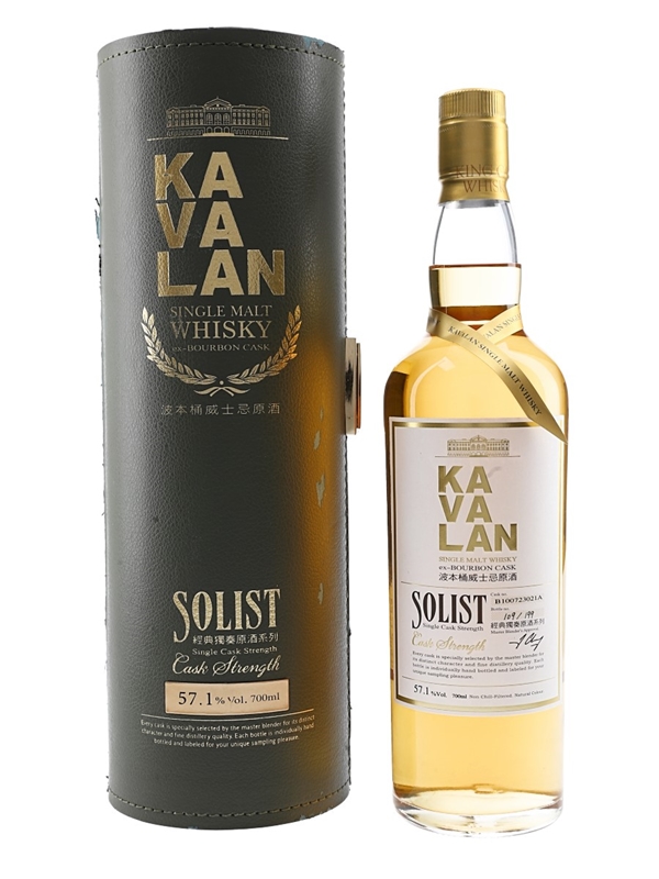A bottle of Kavalan Solist Ex-Bourbon Cask Single Malt Taiwanese Whisky. The bottling code indicates this was bottled on 1st December 2015.