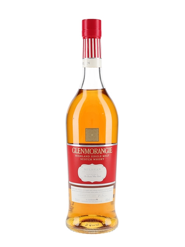 A bottle of Glenmorangie Milsean, the seventh release from Glenmorangie's Private Edition range. This was aged first in ex-bourbon barrels before an extra period of maturation spent in re-toasted red wine casks. Milsean is Gaelic for 'sweet things'.