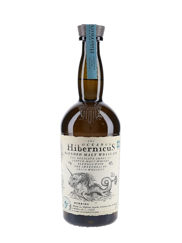 A bottle of The Oceanus Hibernicus Hybrida Blended Malt Whisk(e)y. This is a blend of Scotch malt whisky with Irish Whiskey.