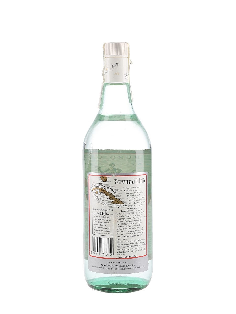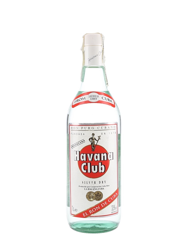 A litre bottle of Havana Club Silver Dry Rum from Cuba. We estimate this was bottled in the 1990s.
