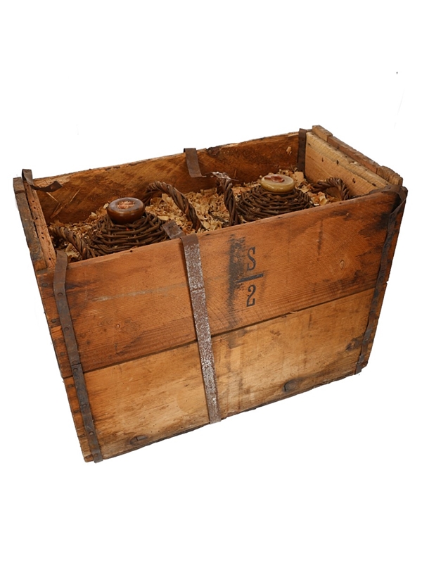 This lot includes the two flagons, original wooden crate, sawdust, metal straps and nails are included with the two as part of the lot.