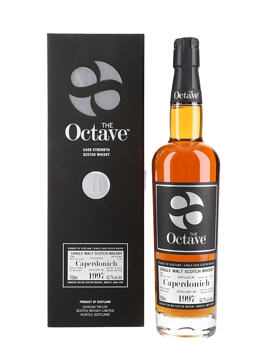 A bottle of Caperdonich The Octave Single Malt Scotch Whisky. This was distilled in 1997, in 2024 by Duncan Taylor.