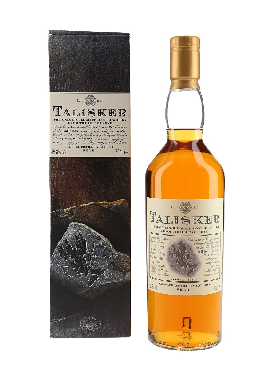 A bottle of Talisker 10 Year Old Single Malt Scotch Whisky. We estimate this was bottled in the early 2000s.