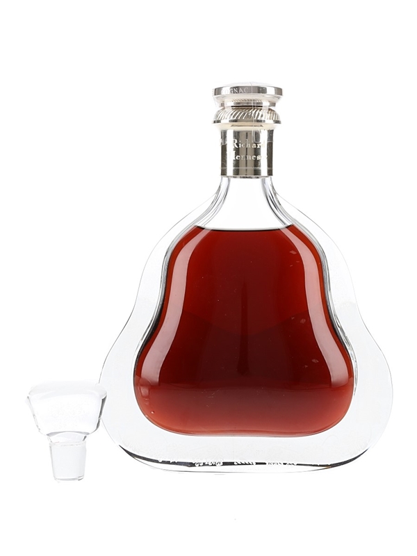 A bottle of Richard Hennessy Cognac second edition, blended from eaux-de-vie laid down by successive generations of the Hennessy family and named after the founder of the house. This is presented in a Baccarat crystal decanter and comes with a crystal stopper.