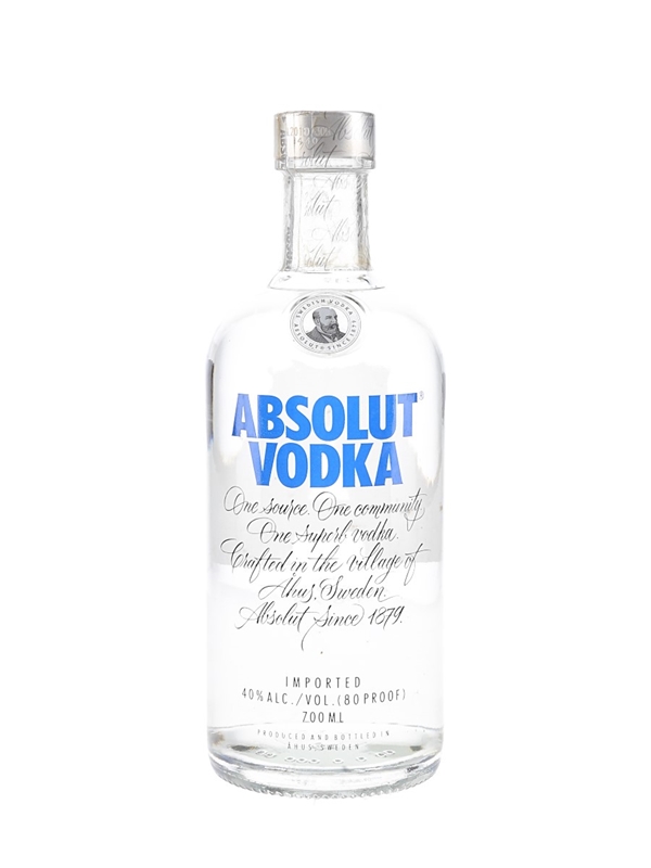 A bottle of Absolut Vodka produced in Sweden.