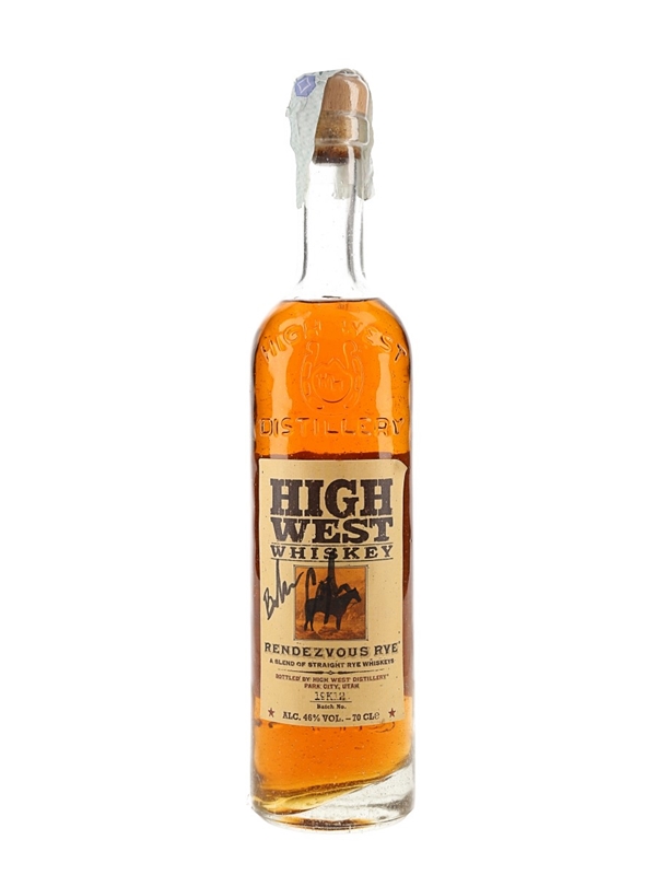 A bottle of High West Rendezvous Rye Whiskey, a blend of straight rye whiskeys from Utah's first legal distillery since the end of Prohibition. This was bottled from batch number 19K12.