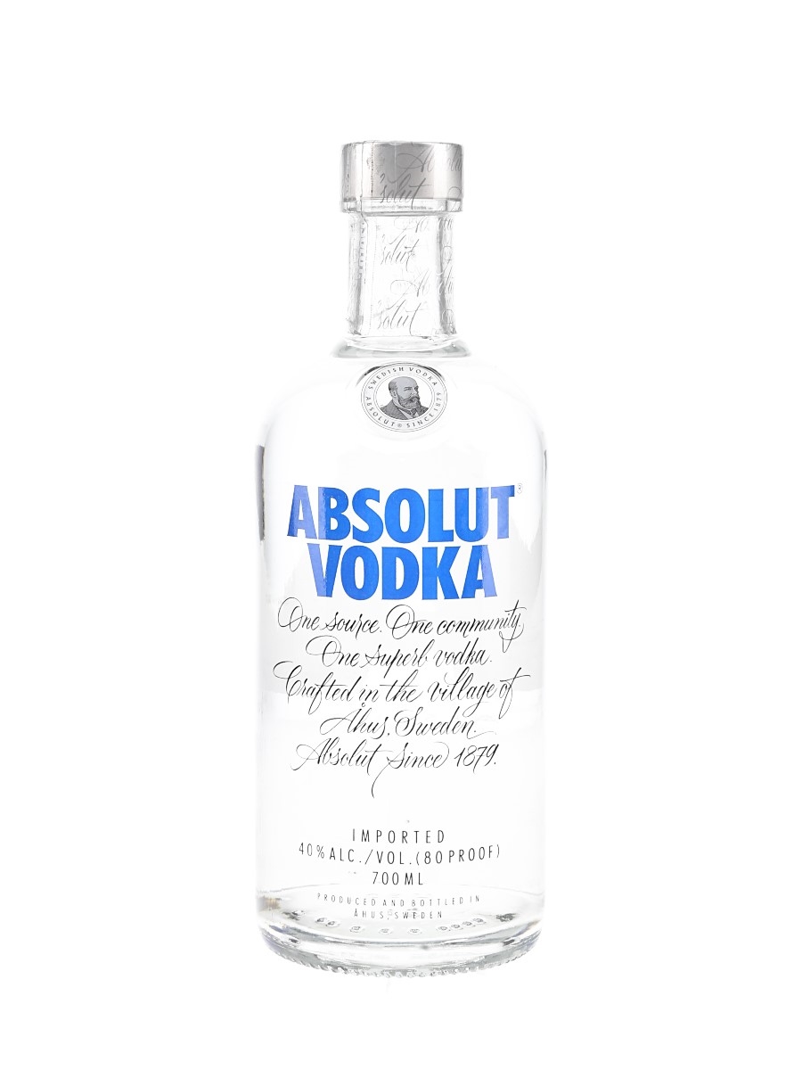 A bottle of Absolut Vodka produced in Sweden.