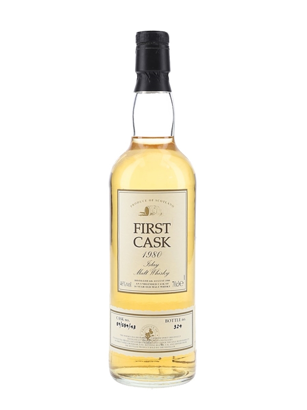 A bottle of Port Ellen 16 Year Old Single Malt Scotch Whisky. This was distilled in 1980, matured in a combination of casks and bottled by Direct Wines Ltd. as part of the First Cask series, available exclusively to First Cask Circle Members.