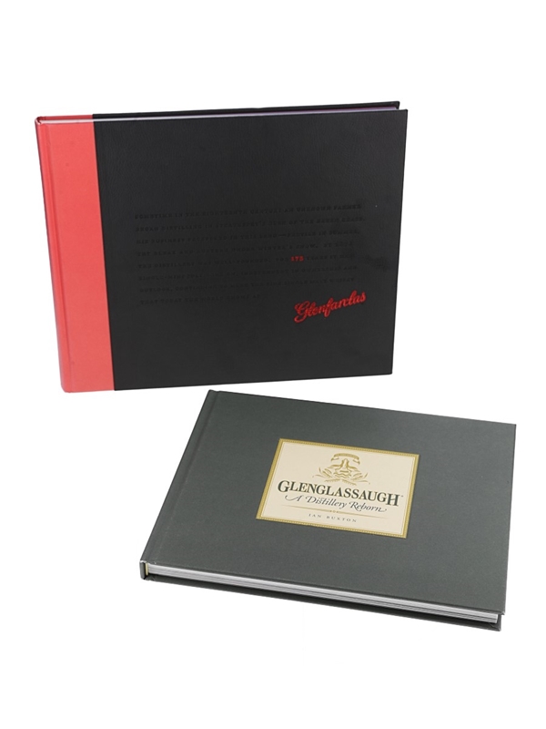 This lot contains two books including The Glenfarclas An Independent Distillery by Ian Buxton, a commemorative 175th anniversary book, published in 2011. This is sealed in plastic wrapping. Glenglassaugh, A Distillery Reborn by Ian Buxton, released to accompany the Glenfarclas 1968 Vintage Single Cask 'My Tribute'.