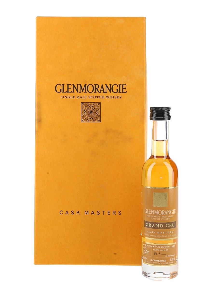 A 10cl sample bottle of Glenmorangie Cask Masters Grand Cru Bordeaux Cask Highland Single Malt Scotch Whisky.