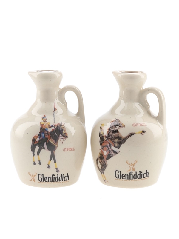 This lot contains two miniature ceramic decanters of Glenfiddich 12 Year Old Single Malt Scotch Whisky.