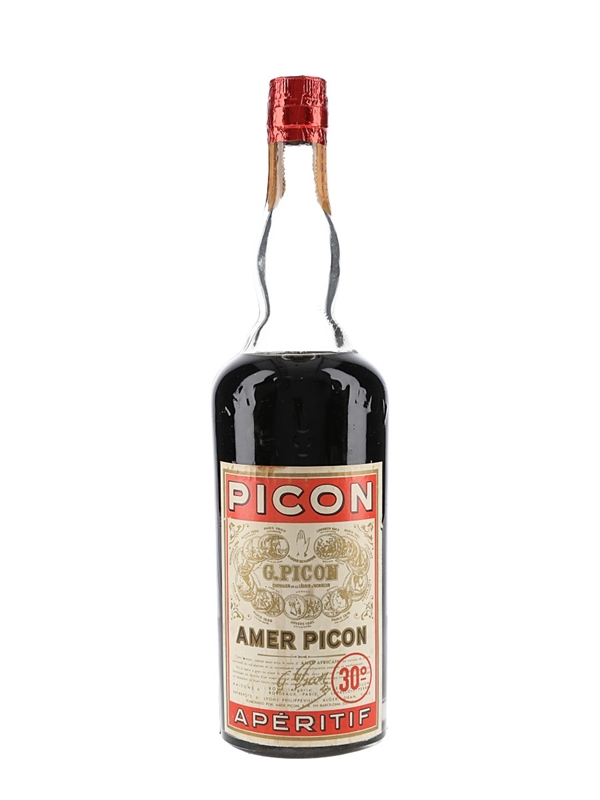 A litre bottle of Picon Amer Apéritif, a bitter liqueur from France flavoured with orange, gentian, and cinchona. We estimate this was bottled in the 1950s.