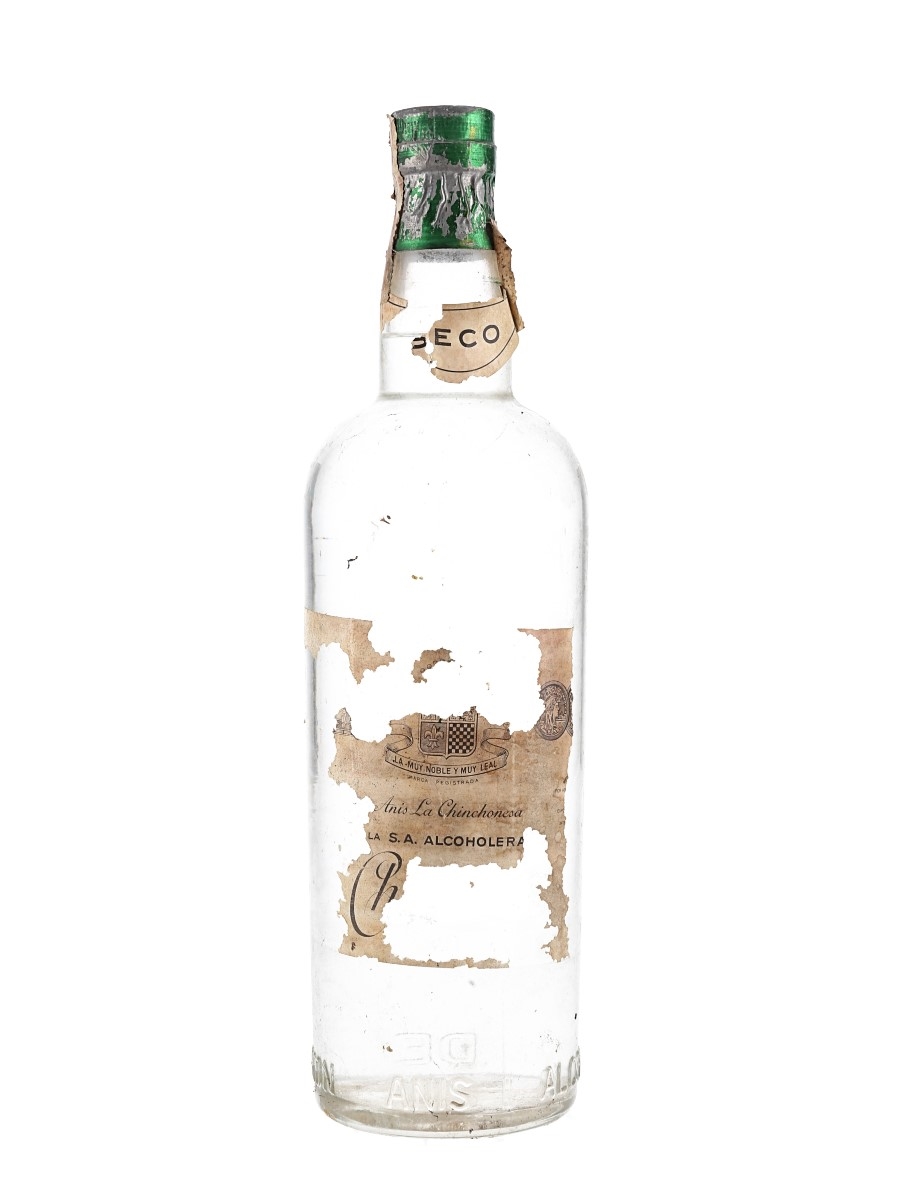 A litre bottle of Anis Chinchonesa, an aniseed liqueur. We estimate this was bottled in the 1960s.