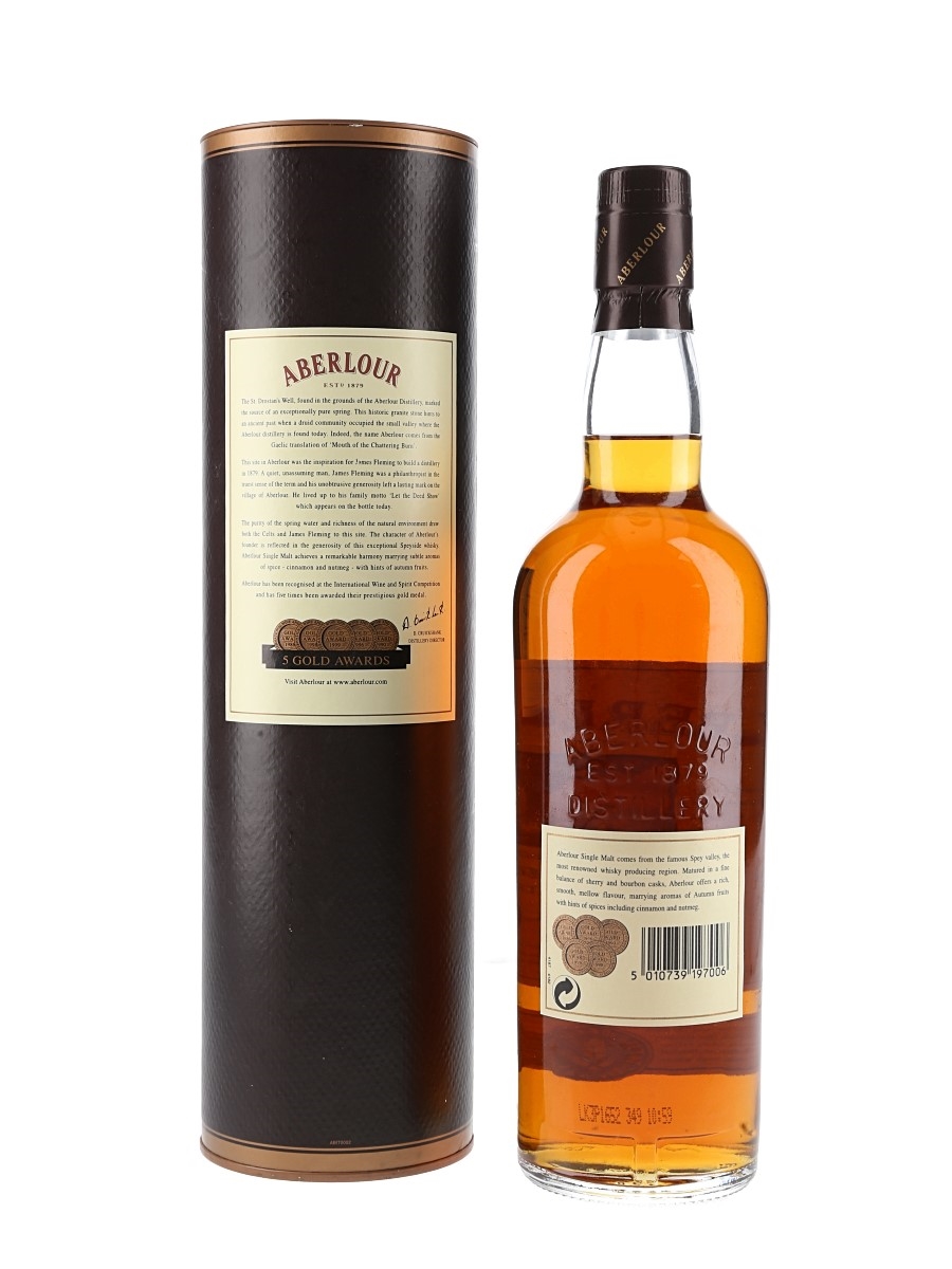 A bottle of Aberlour 10 Year Old Single Highland Malt Scotch Whisky. We estimate this was bottled in the 1990s.