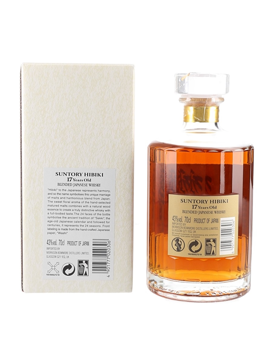 A bottle of Hibiki 17 Year Old Suntory Japanese blended whisky. We estimate this was bottled in the 2000s.