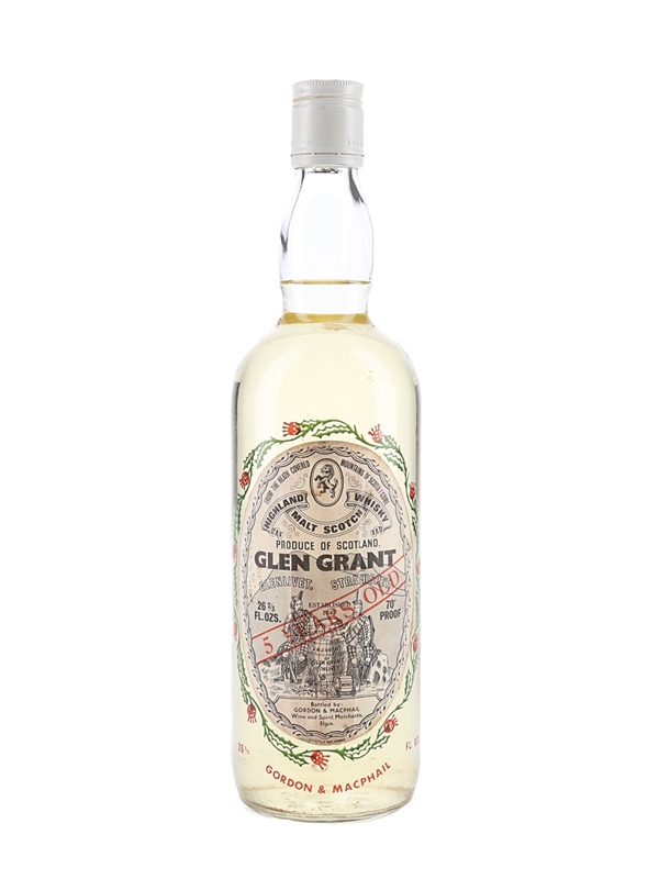 A bottle of Glen Grant 5 Year Old Speyside single malt Scotch whisky. We estimate this was bottled in the 1970s.