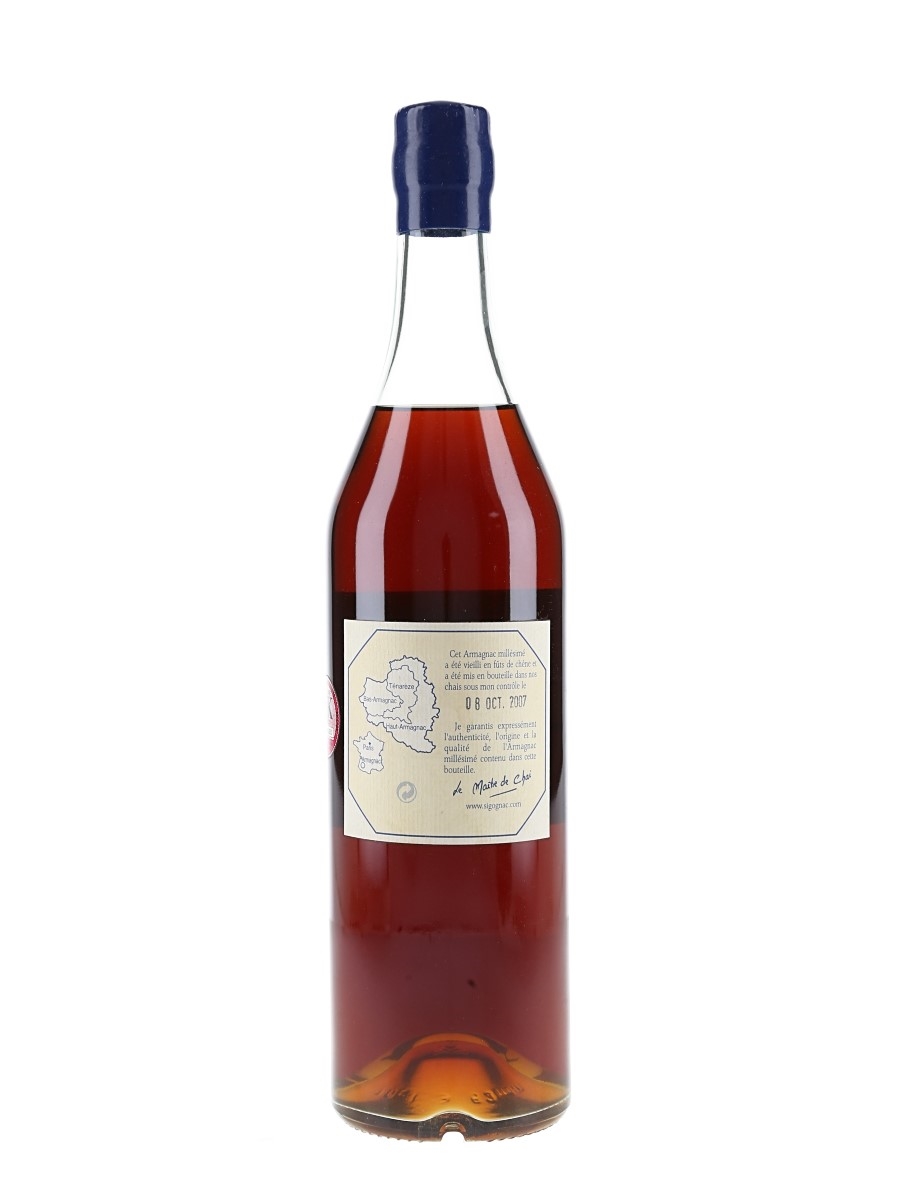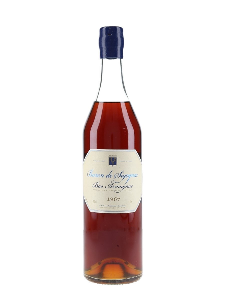 A bottle of Baron de Sigognac 1967 Bas Armagnac. This was matured in oak casks and bottled on 8 October 2007.