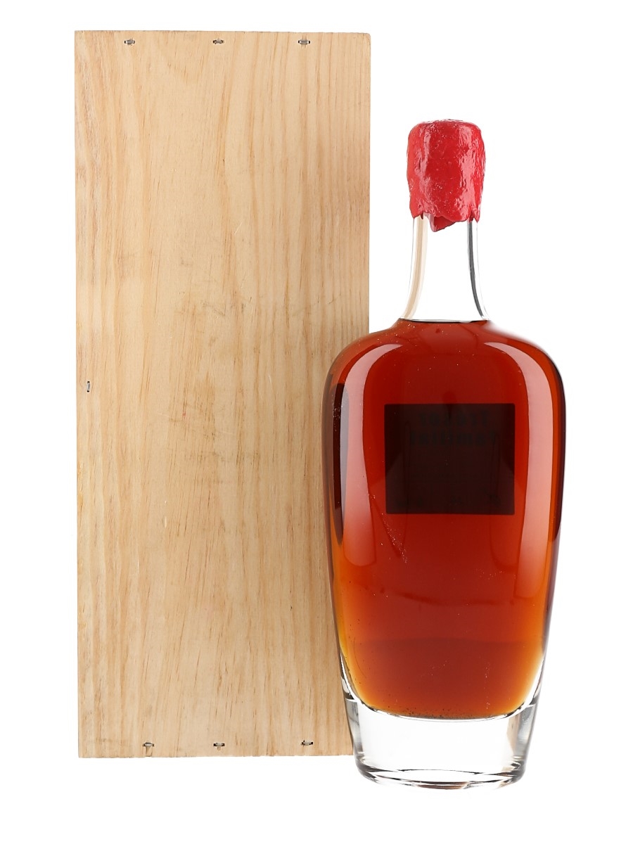 A bottle of Trésor Familial Vintage rare Très Vieil Armagnac. This Armagnac is made from the productions of 1936, 1940 and 1946.
